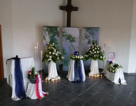 Der Friedhof Stieldorf liegt gegenüber der katholischen Pfarrkirche St. Margareta.